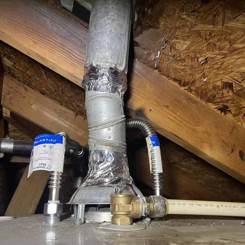 Plumbing Dynamics repaired a water line leak in an attic connected to a water heater in Carrollton, Texas. The work restored proper water flow and prevented potential damage from the attic leak.