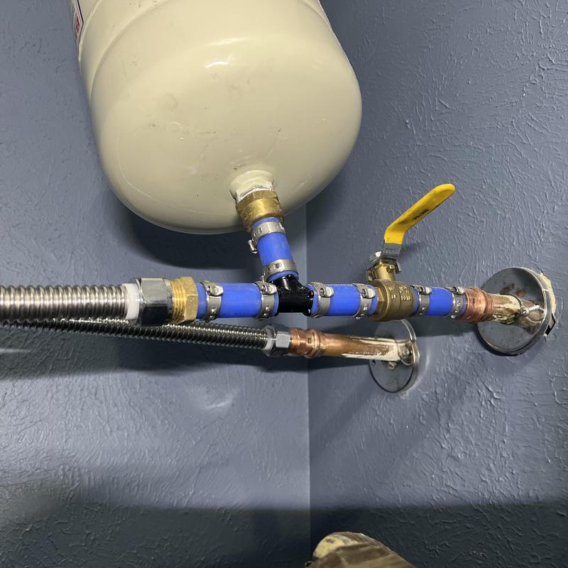 A technician replaced the expansion tank on a water heater in Plano, Texas. This service helps maintain proper water pressure and supports the overall function of the water heating system in residential plumbing setups.